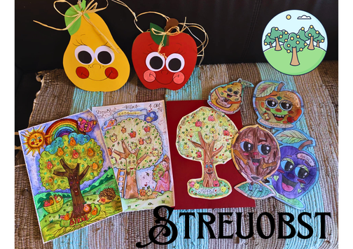 Aus Buntpapier konnten Äpfel und Birnen gebastelt werden. Unter meiner Anleitung entstanden viele farbenfrohe Streuobstfrüchte, jede ein kleines Unikat.