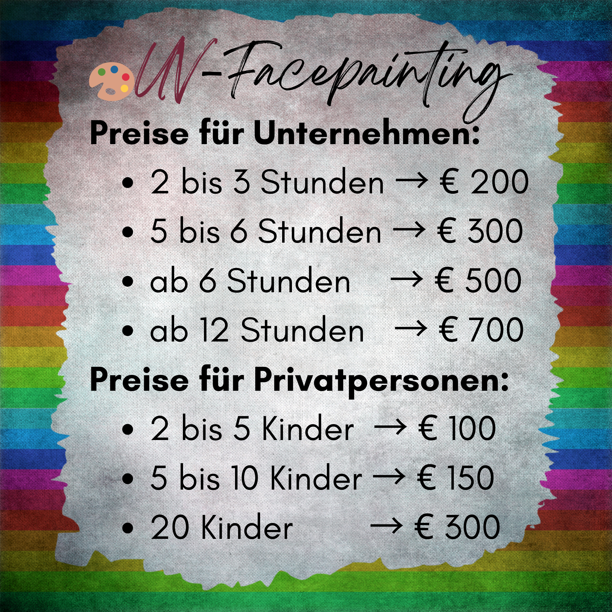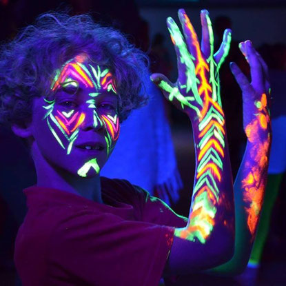 Dann ist UV-Facepainting genau das Richtige für Euch!
