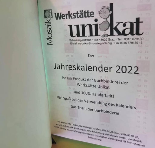 in Kooperation mit der Buchbinderei MOSAIK-Werkstätte Unikat in Graz.